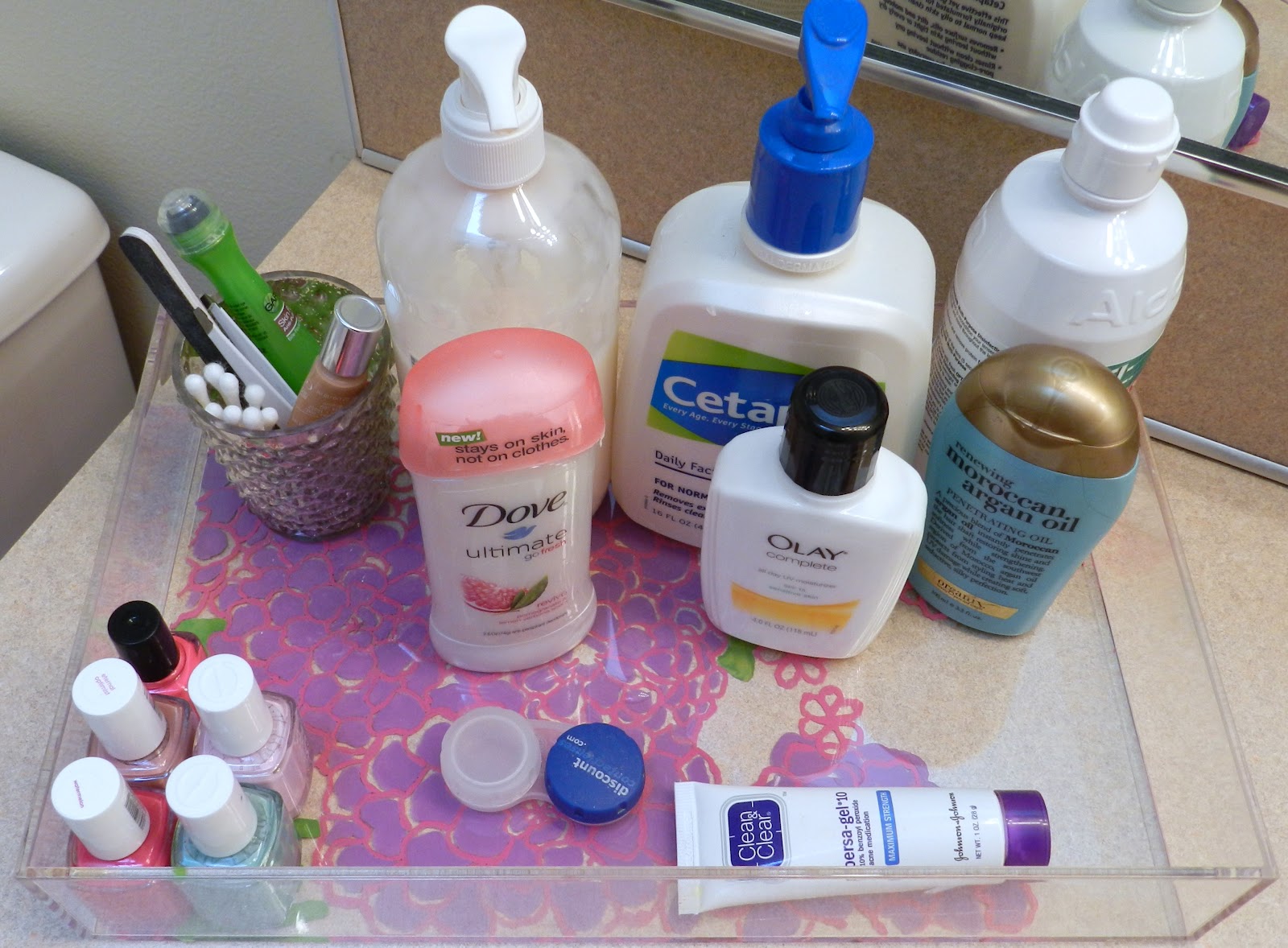 Some of my most used products: Crabtree and Evelyn Lotion, essie nail polish, cetaphil face wash, garnier eye serum, Organix Moroccan Oil (which works just as well as the expensive stuff)